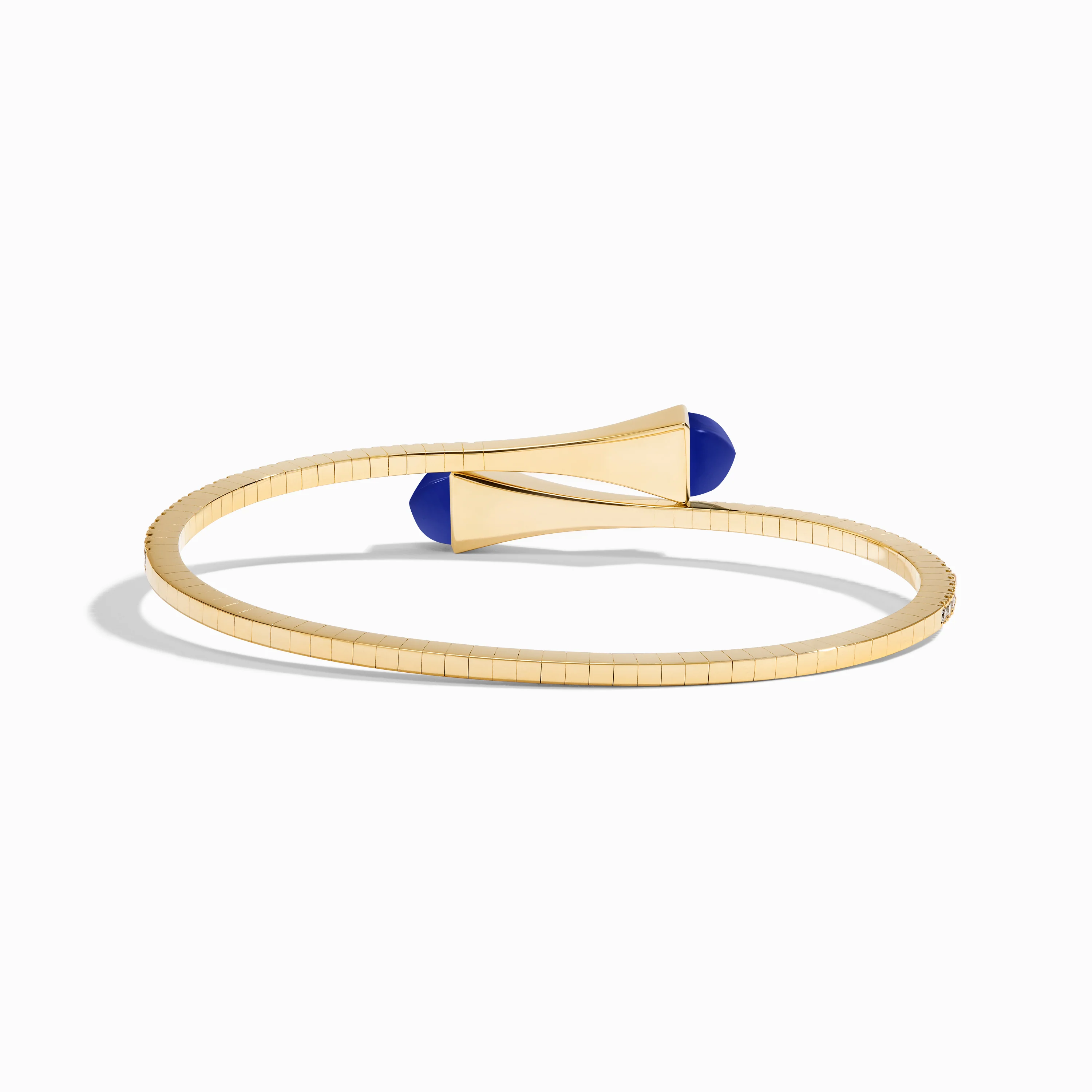 This distinctive design features a bracelet crafted from 18K white, rose, or yellow gold, brilliant-cut diamonds, and capped with precious gemstones of your choice. It can be worn alone or layered with other pieces of the collection for a fashion-forward look.