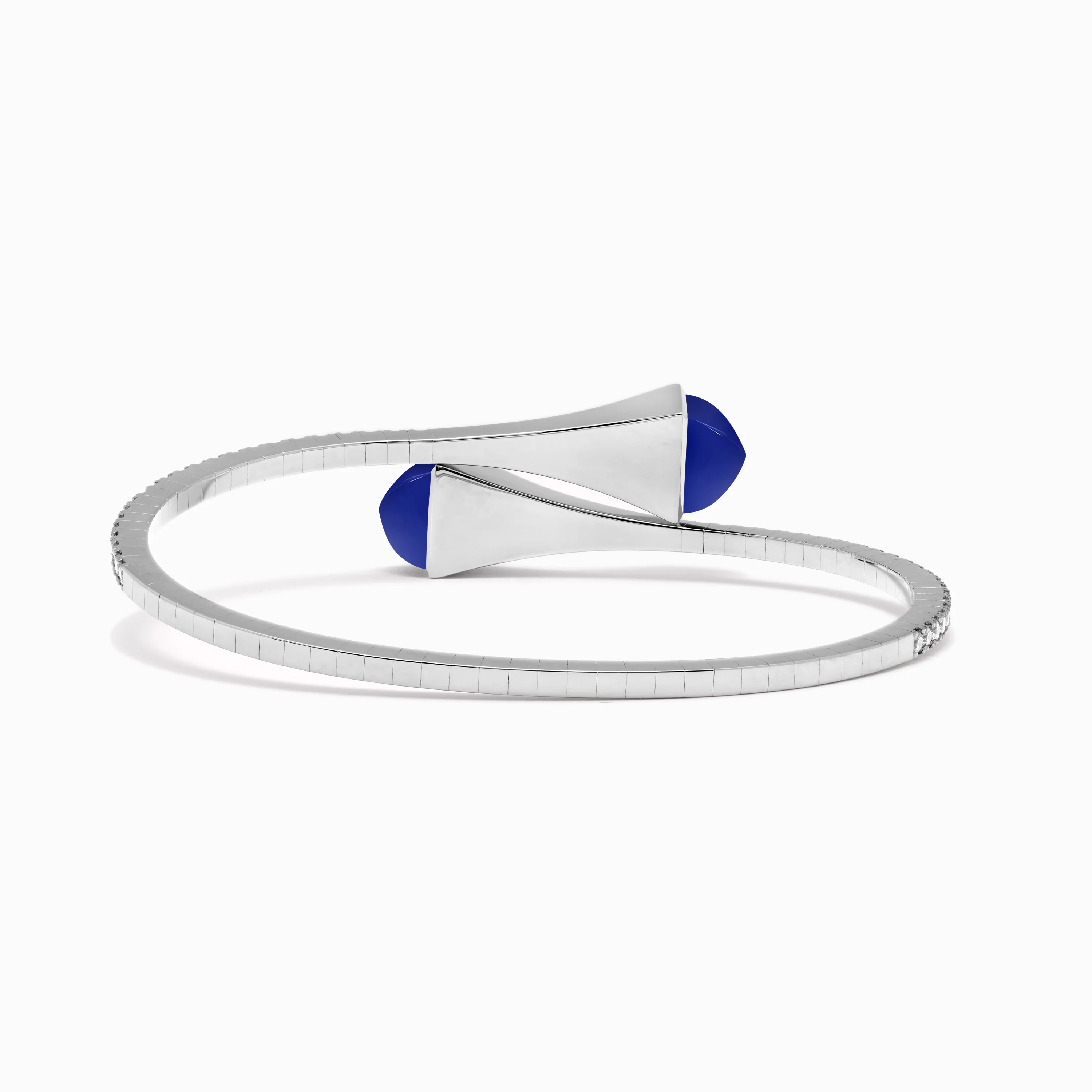 This distinctive design features a bracelet crafted from 18K white, rose, or yellow gold, brilliant-cut diamonds, and capped with precious gemstones of your choice. It can be worn alone or layered with other pieces of the collection for a fashion-forward look.