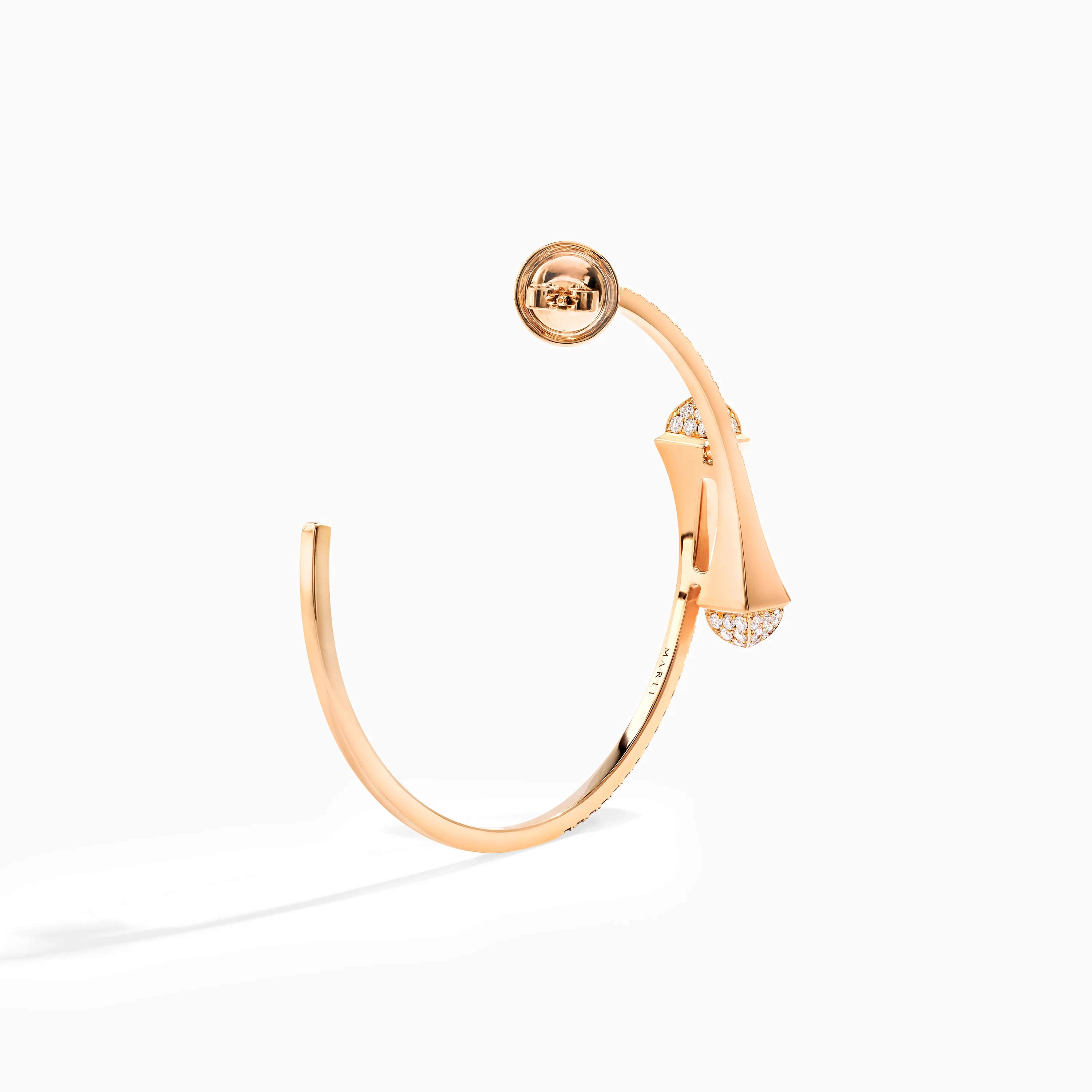 Sleek lines with luminous diamonds up to the pyramids create a modern hoop earring design driving attention to the visage. They can be worn in each ear singularly or layered together with Cleo hoops of the same or different size to give a more fashion-forward look.