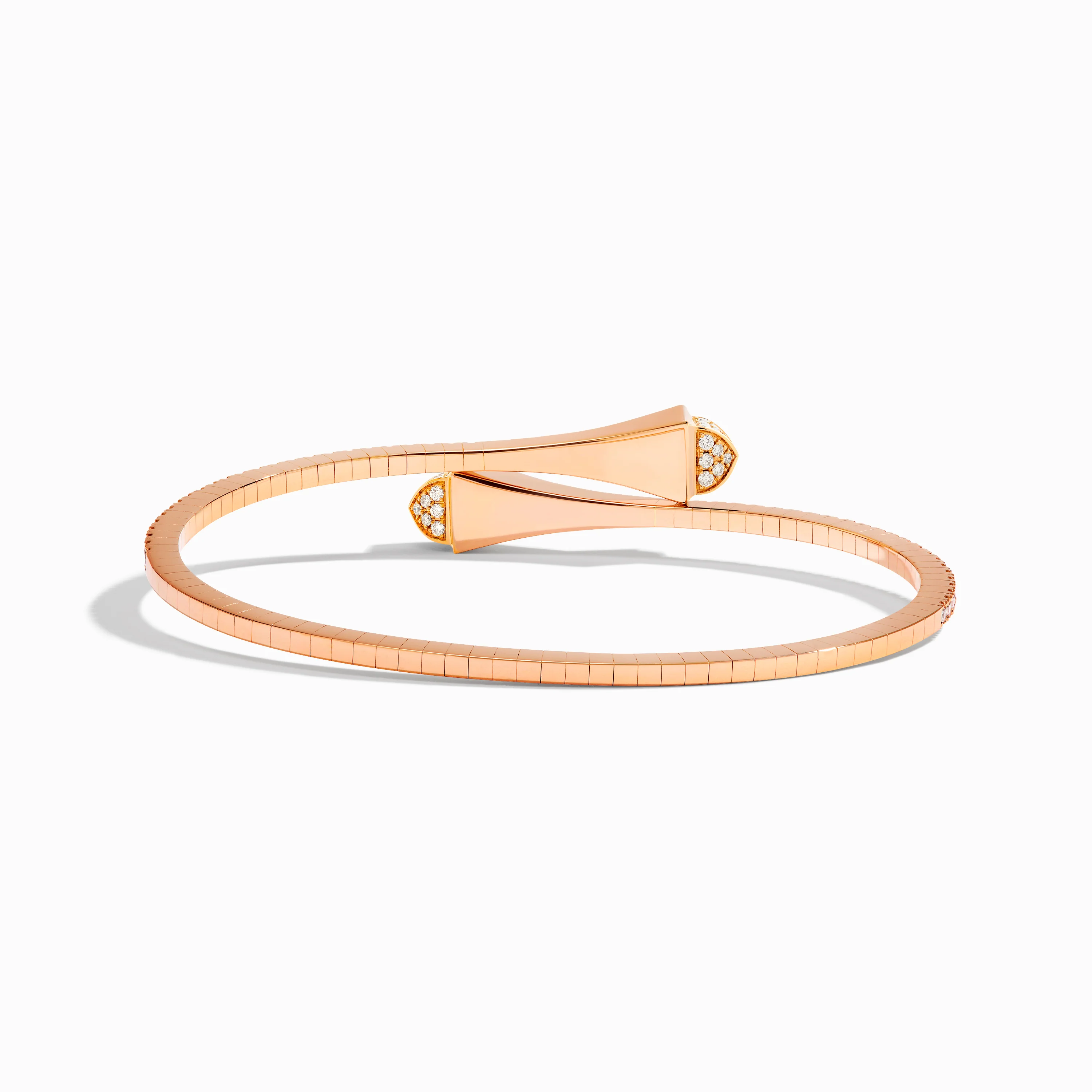 This distinctive design features a radiant bracelet crafted from 18K white, rose, or yellow gold, brilliant-cut diamonds up to the pyramids. It can be worn alone or layered with other pieces of the collection for a fashion-forward look.