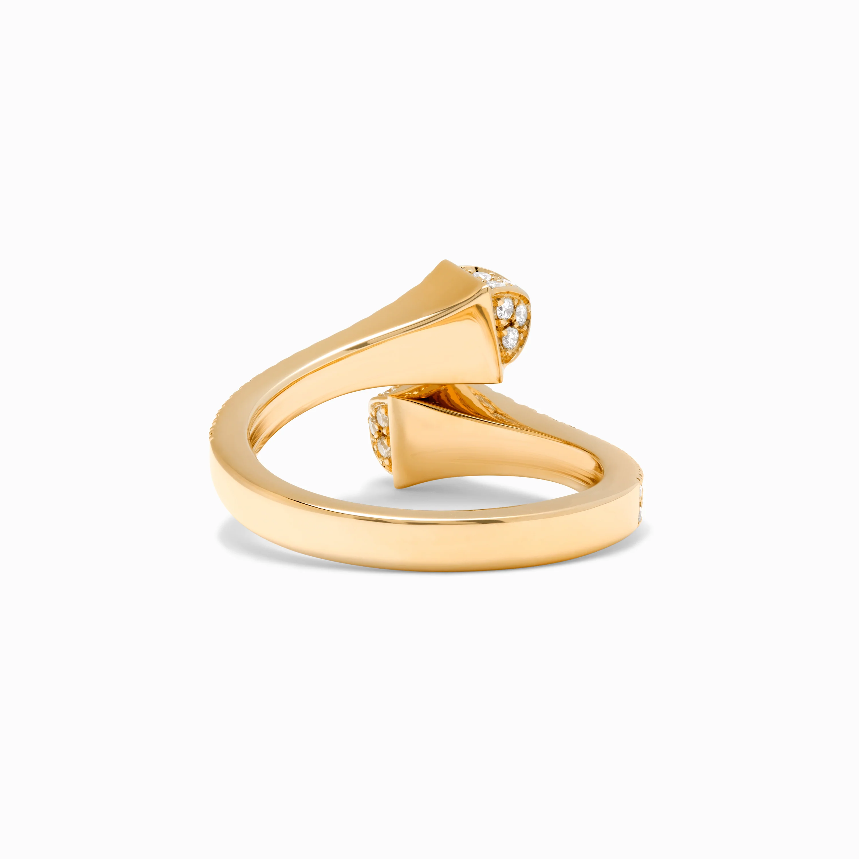 This distinctive design features a ring crafted from 18K white, rose, or yellow gold, brilliant-cut diamonds up to the pyramids.