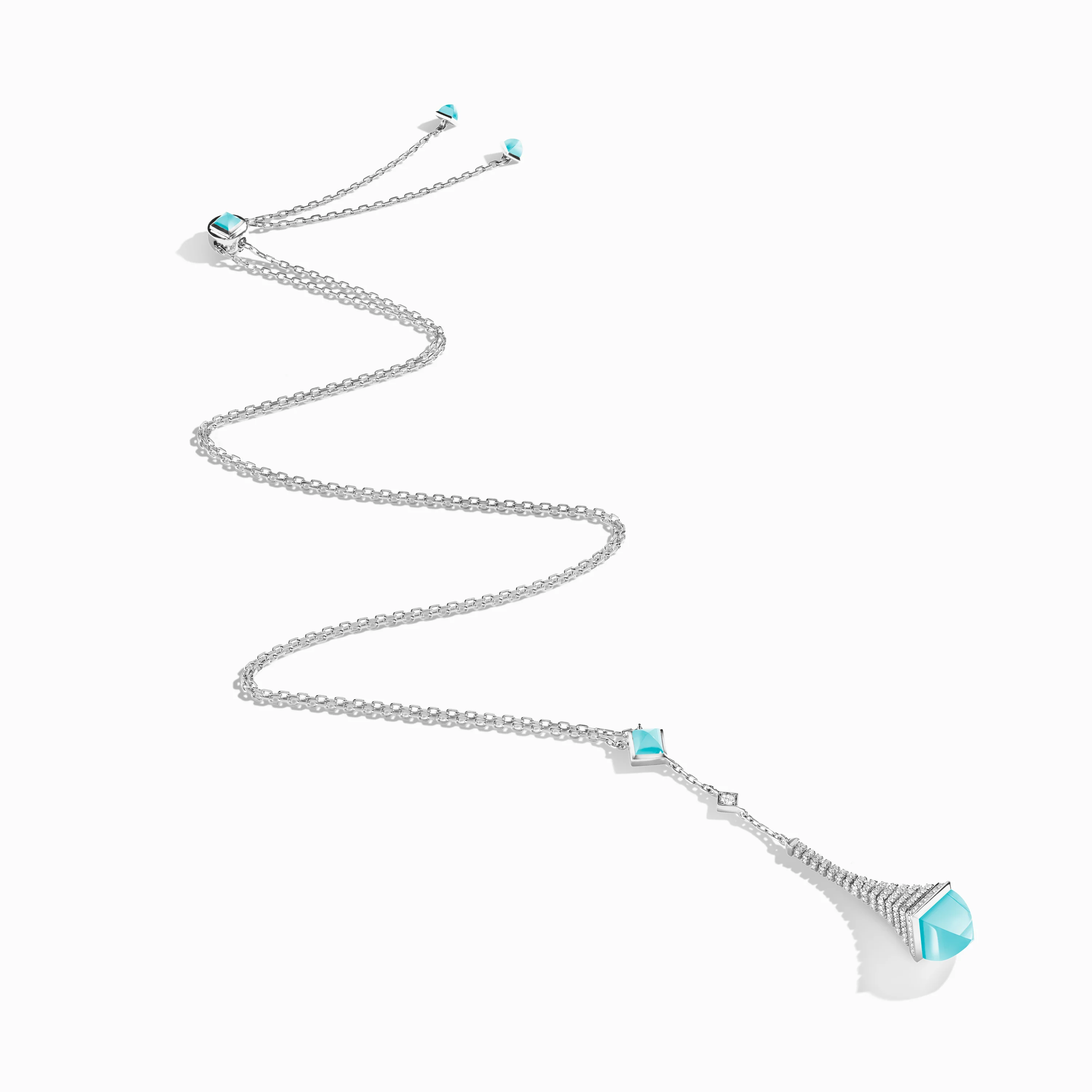 Fusing innovative and revolutionary design, this drop pendant necklace features graphic lines and enriching color. Enhanced with illuminating diamonds all around the pendant, it reflects New York City's architecture. The gold chain features a zipper allowing the pendant to be longer or closer to the neck.