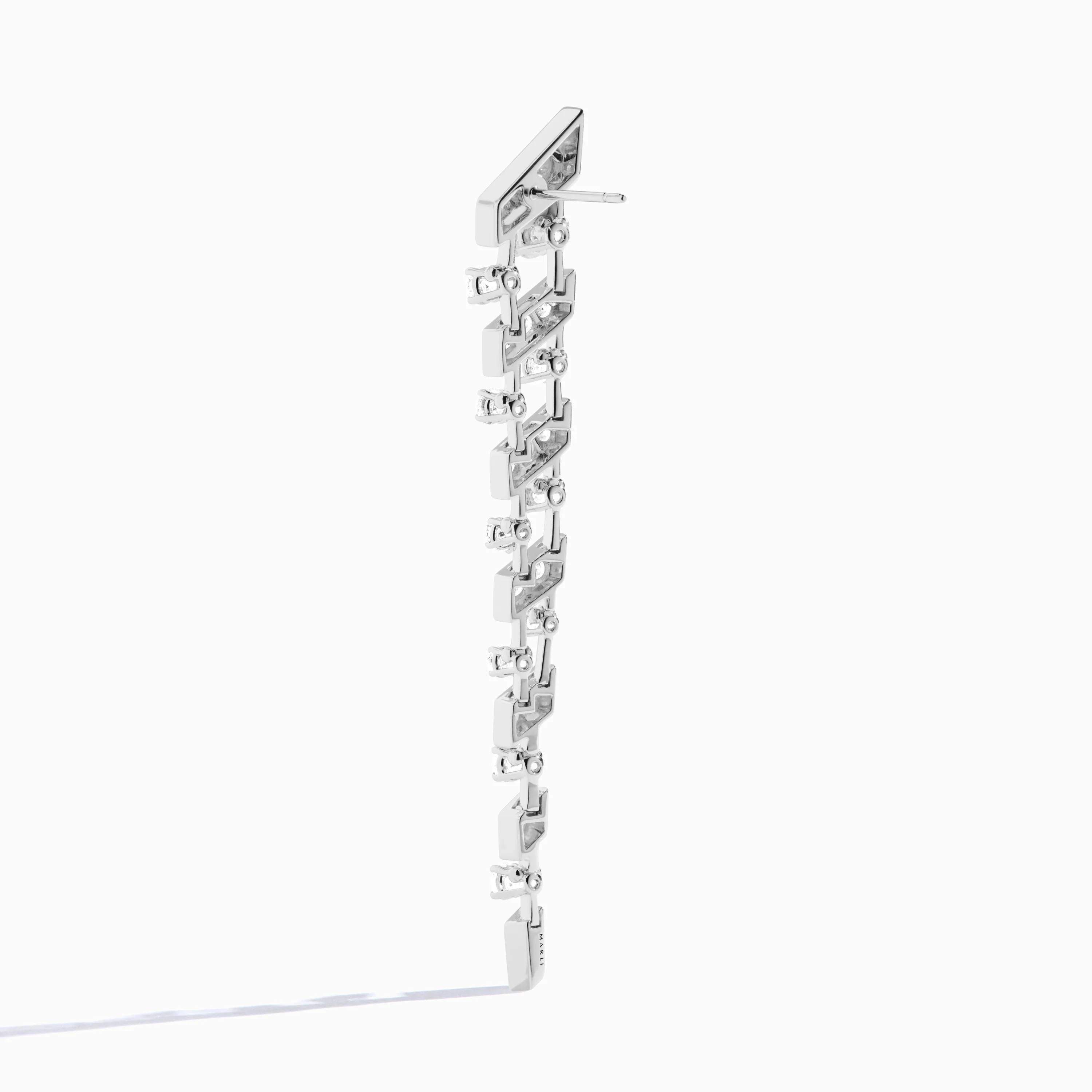 Asymmetrical lines and dazzling diamonds create chic earrings which enhance any look.