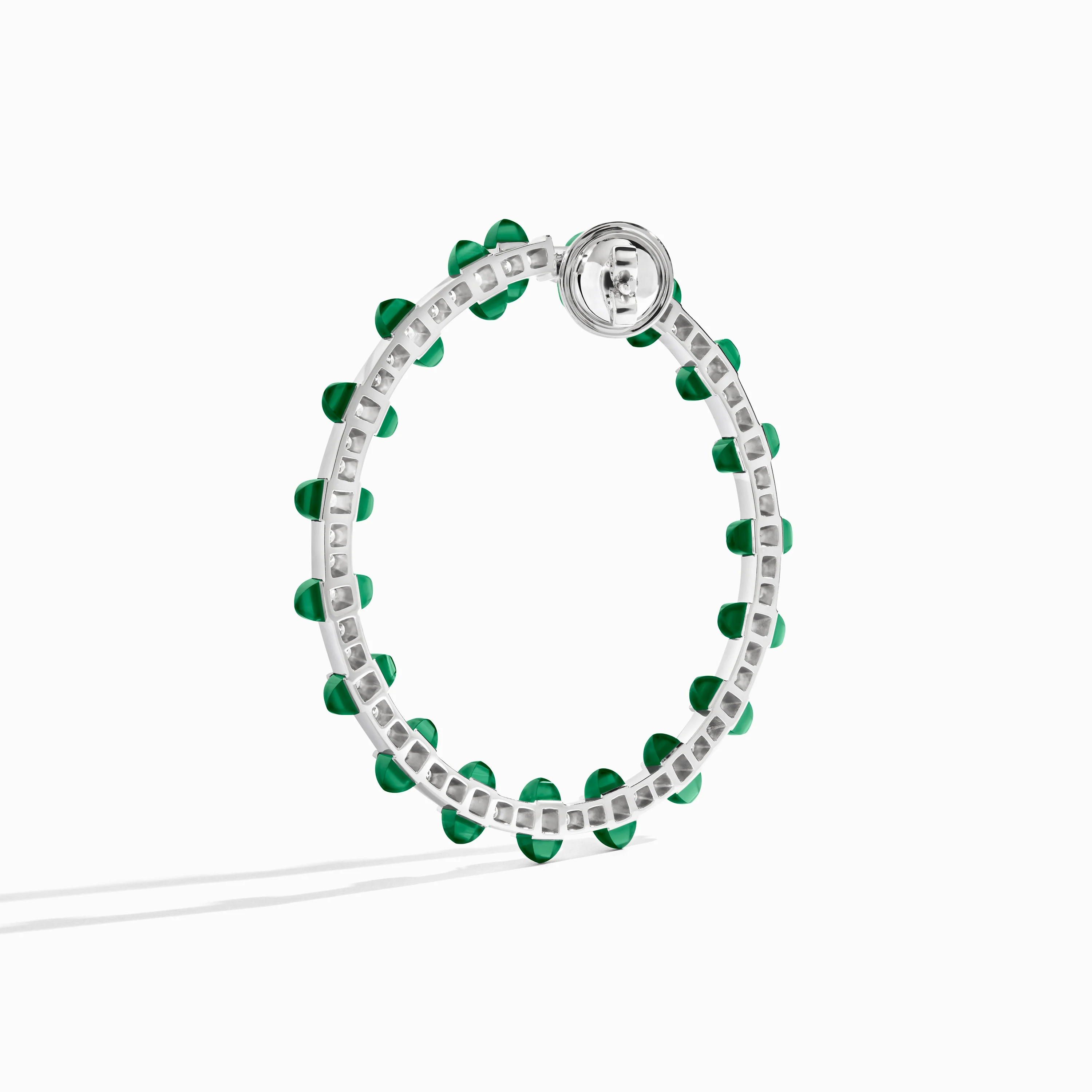 Our uniquely designed halo earring features the Tip-Top design where precious pyramid gemstones engulf the diamonds. They are crafted in 18K white or rose gold and your choice of gemstone.