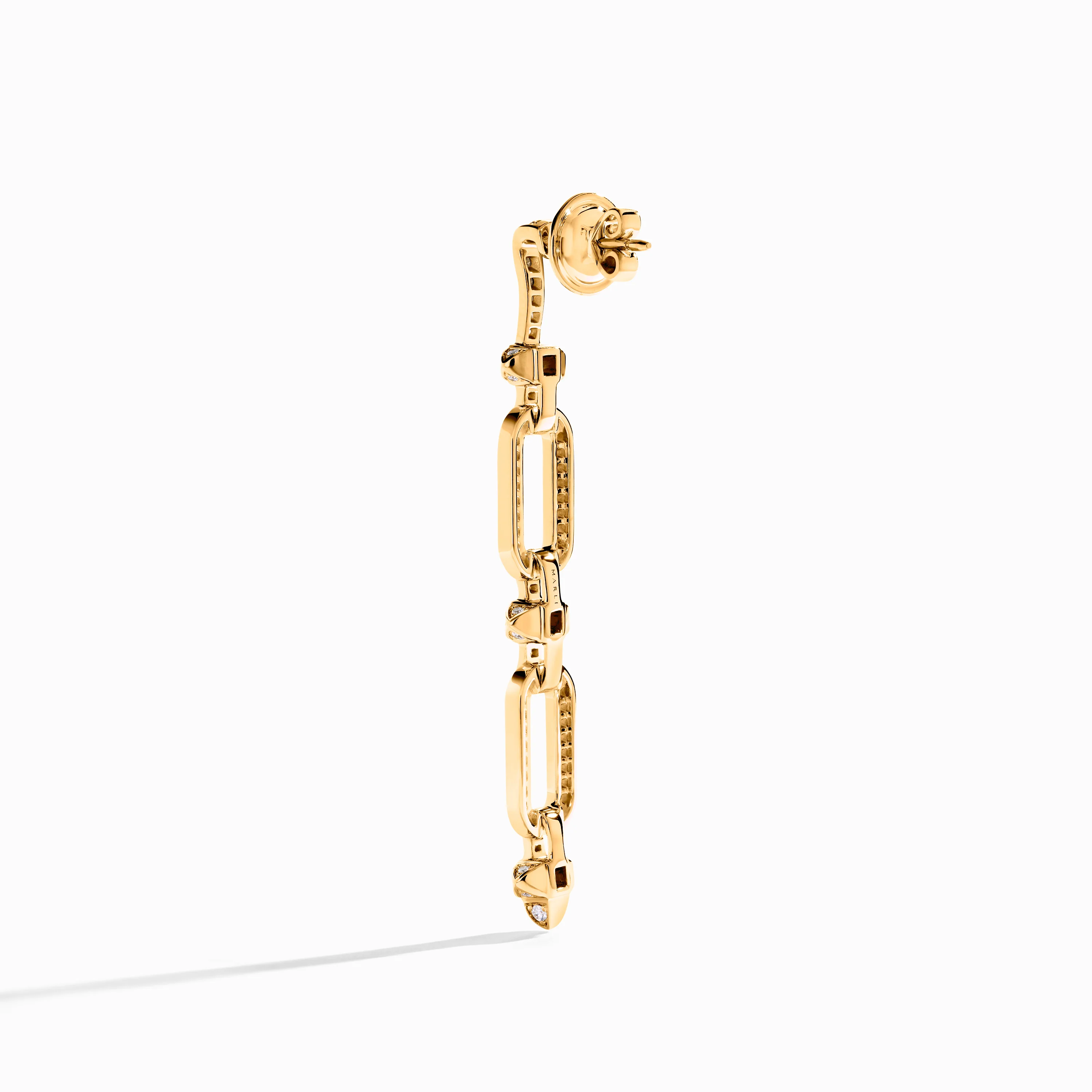 18 Karat Yellow Gold Link Full Diamond Drop Earrings