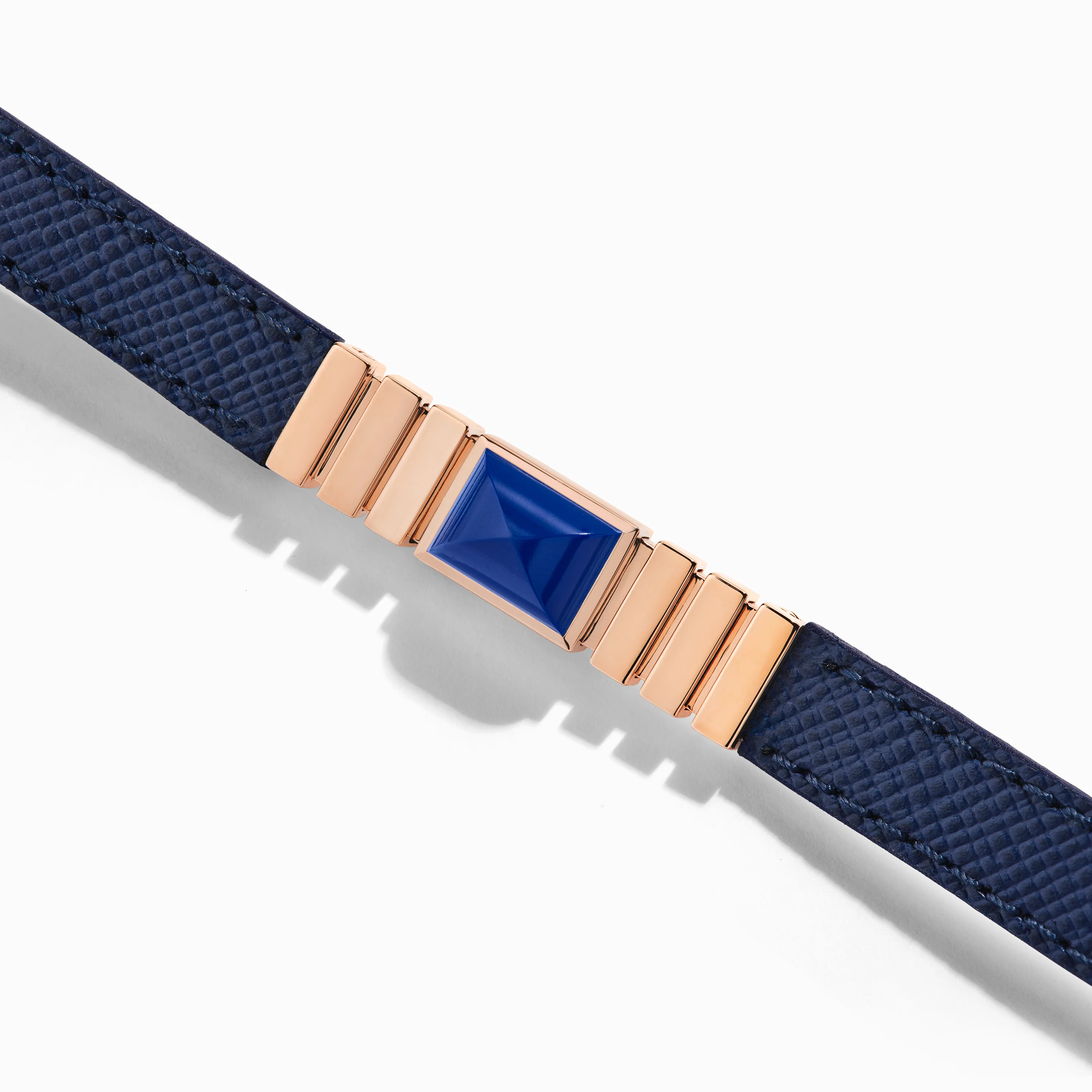 Celebrating individuality, UNII is the intersection of classic form and contemporary edge. Italian leather and sharp pyramidal gemstones create an infinite ray of color, contrasted by, links of 18 karat gold. Welcome to the era of expression.
